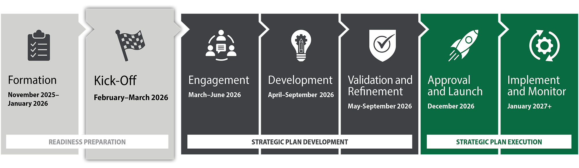 Endorsement by governance bodies, and UPlan branding and communications roll-out.